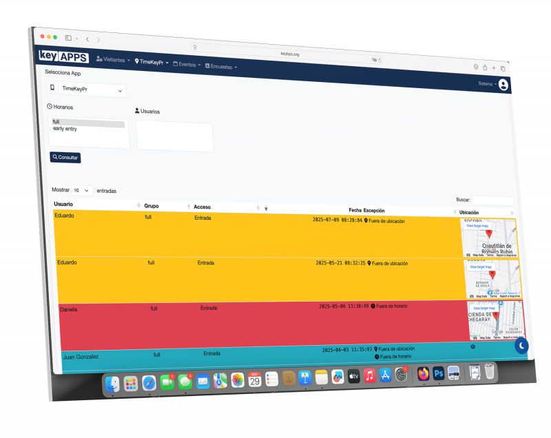 - Know the location of the registration of the activities of all collaborators, inside and outside the company.